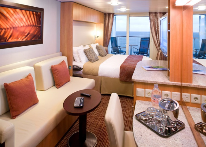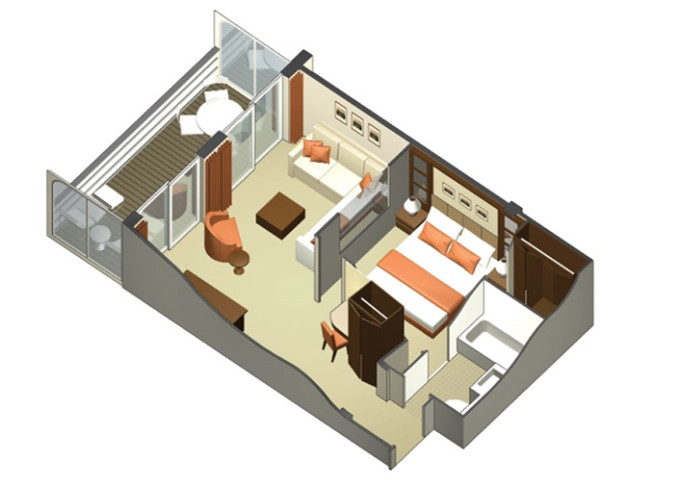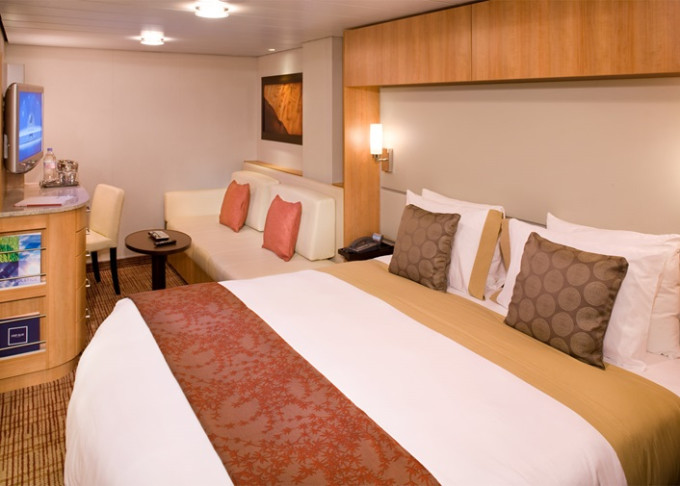 - Kajuty sú umiestnené v blízkosti lodného Spa. K ich vybaveniu patrí posilnený systém vzdušnej filtrácie, posteľ Queen-Size (v kategóriách Edge King-Size), veľké zasúvacie sklenené dvere, exkluzívne posteľné prádlo eXhale®, veľkorysé skladovacie priestory.