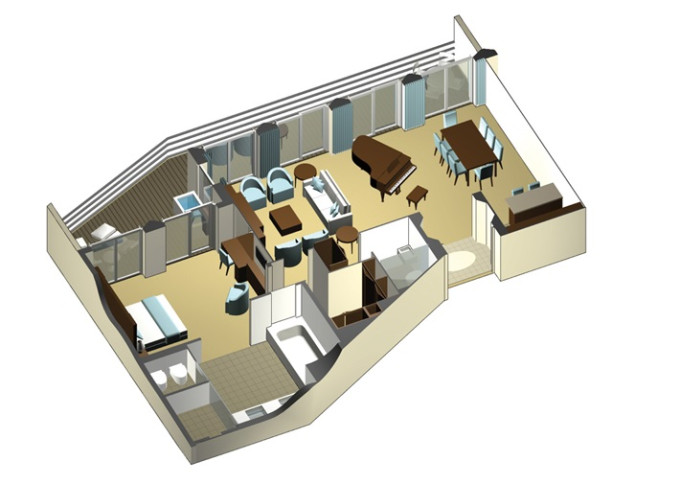 | CS - Celebrity Suite 37 m² + balkón 10 m². 9,11. paluba. Max 4 osoby. Výhody Suite. | 10 470 € 5 235 € za osobu | ||