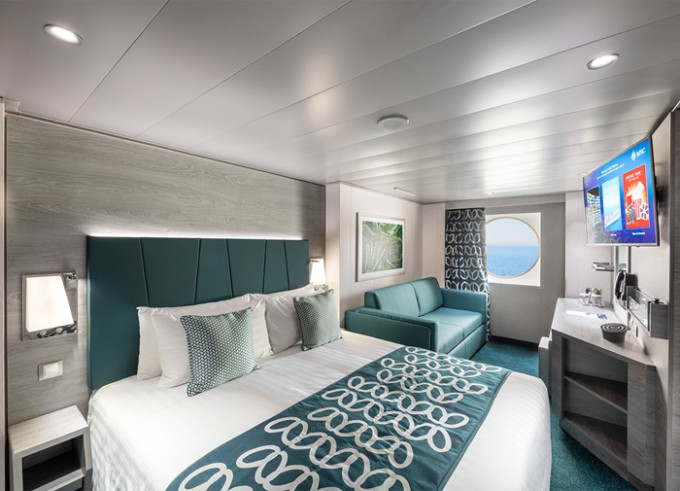 Vonkajšia kajuta s neotvárateľným oknom: 15 - 25 m², kajuta s manželskou posteľou (na požiadanie 2 oddelené postele) a 1-2 vyklápacie horné lôžka resp. rozkladacia pohovka. Klimatizácia, kúpeľňa so sprchou a WC, toaletný stolík, skriňa, interaktívna TV, trezor, telefón, sušič vlasov, virtuálna asistentka ZOE, neotvárateľné okno. Kajuty v kategórii Bella a niektoré Junior a Deluxe majú obmedzený výhľad.