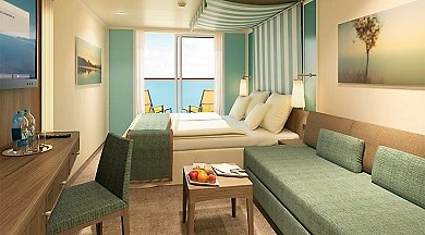 | VC - Kajuta s verandou Komfort PREMIUM od 20 m² + balkón od 6 m². 5,8,9. až 15. paluba. Max 4 osoby. Cenový model Premium. | 3 170 € 1 585 € za osobu | ||