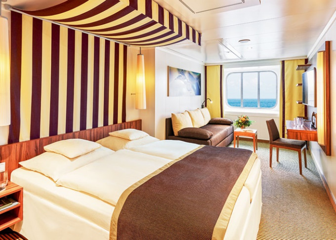 | MD - Vonkajšia kajuta PREMIUM 22-23 m². Neotvárateľné okno. 4. paluba. Max 4 osoby. Cenový model Premium. | 2 580 € 1 290 € za osobu |