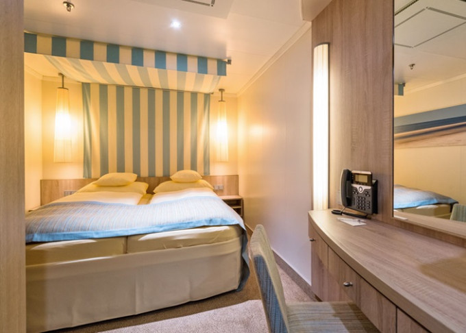 Vo všetkých kajutách sa nachádza regulovateľná klimatizácia, safe, kúpeľňa so sprchou, sušič na vlasy, telefón, Tv s plochou obrazovkou.