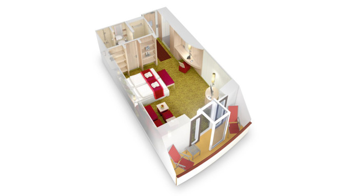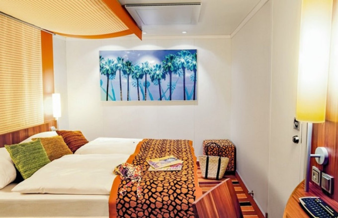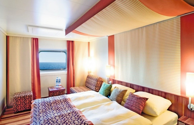 Vo všetkých kajutách sa nachádza regulovateľná klimatizácia, oddelené postele spojiteľné do jednej dvojitej, safe, kúpeľňa so sprchou, sušič na vlasy, telefón, Tv.