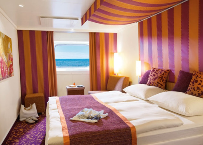 | CA - Vonkajšia kajuta PREMIUM / obmedzený výhľad 14-16,5 m². Neotvárateľné okno / obmedzený výhľad. 6. paluba. Max 2 osoby. Cenový model Premium | 1 350 € 675 € za osobu | ||