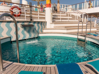 - Používanie zariadení lode: bazény, vírivky a lehátka, sauna*, plážové osušky, moderné fitnescentrum ...