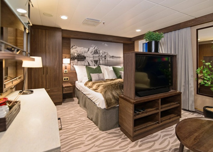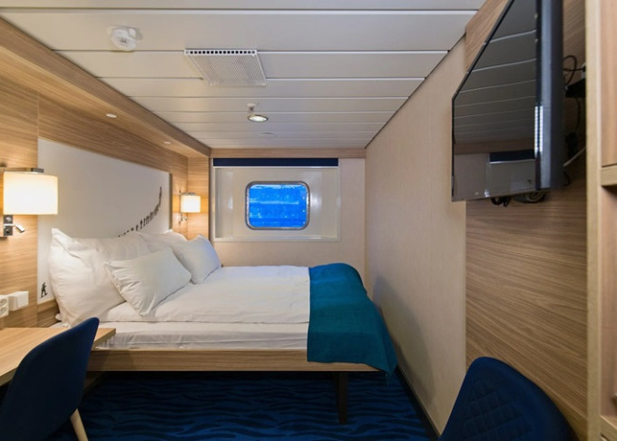 | P2D - Vonkajšia kajuta Arctic Superior 8-13 m². Neotvárateľné okno (môže byť limitovaný výhľad). Manželská posteľ, Tv, varná kanvica. 5. paluba. Max 2 osoby. | 5 748 € 2 874 € za osobu | ||