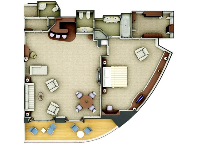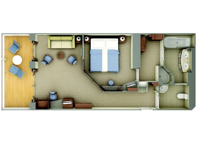 | SV - Superior Veranda Suite 26 m² + 6 m² balkón.5. až 8. paluba. Max 3 osoby. | 16 600 € 16 600 € za osobu | ||