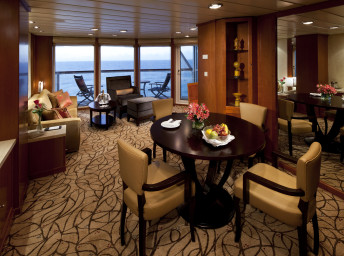 CS - Celebrity Suite 44 m² + balkón 8 m². Kúpeľňa s vírivkou. 6. až 9. paluba. Max 3 osoby. Výhody Suite The Retreat. 20 728 € 5 182 € za osobu