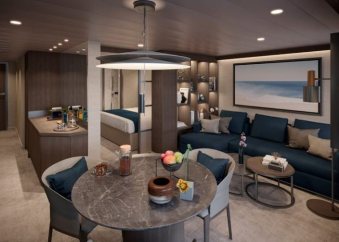 | Ocean Residence - Retreat Residence Suita 63 m² + Terasa s vírivkou a sedením 14 m² / 7. paluba: 18 m². Spálňa s obývacou a jedálenskou časťou, šatník. Koktailová súprava, minibar, kávovar, vodná kanvica, ďalekohľad, sejf, mramorová kúpeľňa s vaňou a sprchou, extra wc. Taška Technogym Case Kit. Fľaša šampanského na privítanie. Služby osobného majordóma. Maximálna kapacita 3 dospelí alebo 2 dospelí + 2 deti pod 18 rokov. | 81 340 € 20 335 € za osobu |