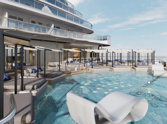 Ocean Residence - Serenity Residence Suita 60 m² + Terasa s vírivkou, sedením, pohovkou a lehátkami 7. paluba: 53 m² / 9. paluba: 66 m². Spálňa s obývacou a jedálenskou časťou, šatník. Koktailová súprava, minibar, kávovar, vodná kanvica, ďalekohľad, sejf, mramorová kúpeľňa s vaňou a sprchou. Taška Technogym Case Kit a Technogym Bench. Fľaša šampanského na privítanie. Služby osobného majordóma. Maximálna kapacita 3 dospelí alebo 2 dospelí + 2 deti pod 18 rokov. 85 515 € 28 505 € za osobu