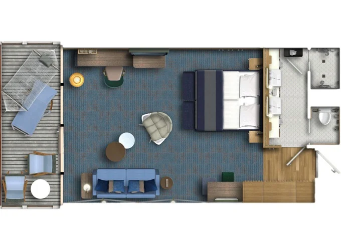 | SUSO - Übersee Suite 40 m² + balkón 9 m² s ležadlami a hojdacou sieťou. 14. paluba. Max 4 osoby. Výhody Suite. | 27 056 € 6 764 € za osobu |