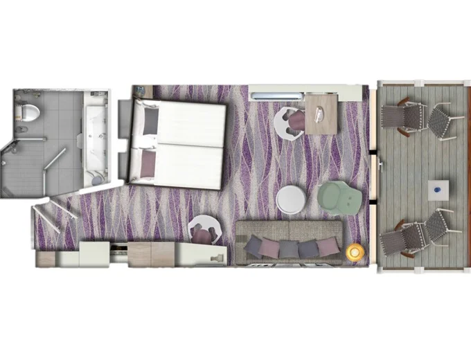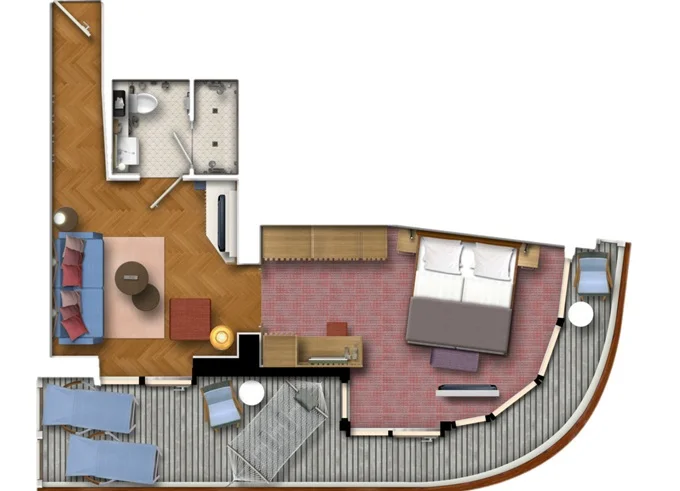 | JBAO - Junior Suite s balkónom 26 m² + balkón 7 m² so stolom. 10,11. paluba. Max 4 osoby. Výhody Junior Suite. | 4 798 € 2 399 € za osobu |