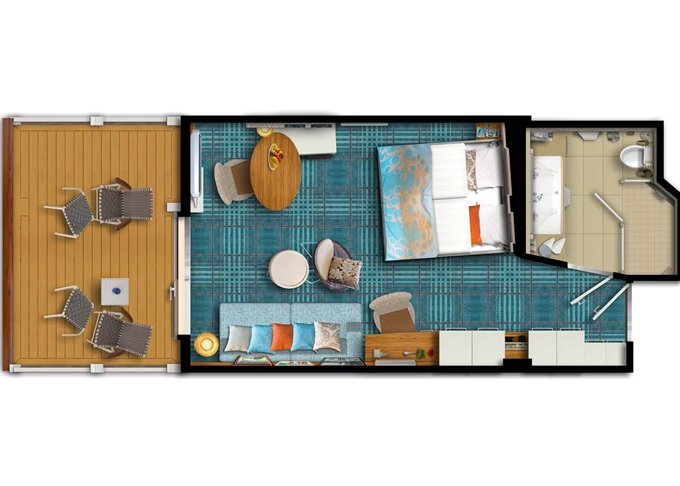 | JBAO - Junior Suite s balkónom 26 m² + balkón 8 m² so stolom. 10. paluba. Max 4 osoby. Výhody Junior Suite. | 10 298 € 5 149 € za osobu | ||