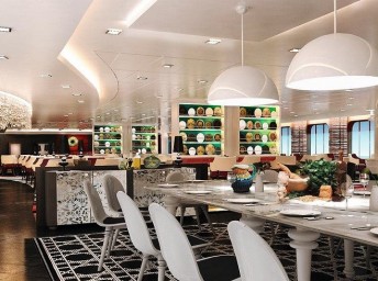 - Značkové nápoje na palube (nealkoholické nápoje, pivo, sekt, víno, koktaily, long drinky, liehoviny, kávové špeciality) počas celého dňa v reštauráciách, baroch a salónoch