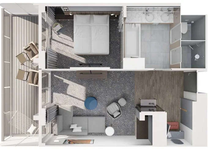| JKCO - Junior Suite s balkónom C 26 m² + balkón 7 m² so stoličkami a podnožkami. 7. paluba. Max 4 osoby. Výhody Junior Suite. | 5 008 € 2 504 € za osobu | ||