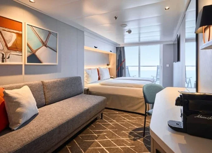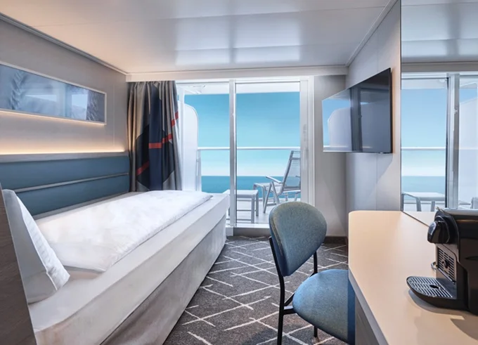 | SKAO - Schöne Aussicht Suite 39 m² + balkón 10-12 m² s ležadlami a hojdacou sieťou. 7-14. paluba. Max 4 osoby. Výhody Suite. | 6 608 € 3 304 € za osobu | ||